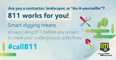 Anyone planning to dig or excavate – whether to build a fence, dig drainage ditches, add an addition to a house or build a new facility – is responsible for contacting the state’s One Call Center first to help avoid underground utilities during digging or excavation activities. The utility owner, in turn, provides specific location information to the excavator and marks the underground facility with above-ground APWA (American Public Works Association) color-coded markings. Learn more about how 811 Works: